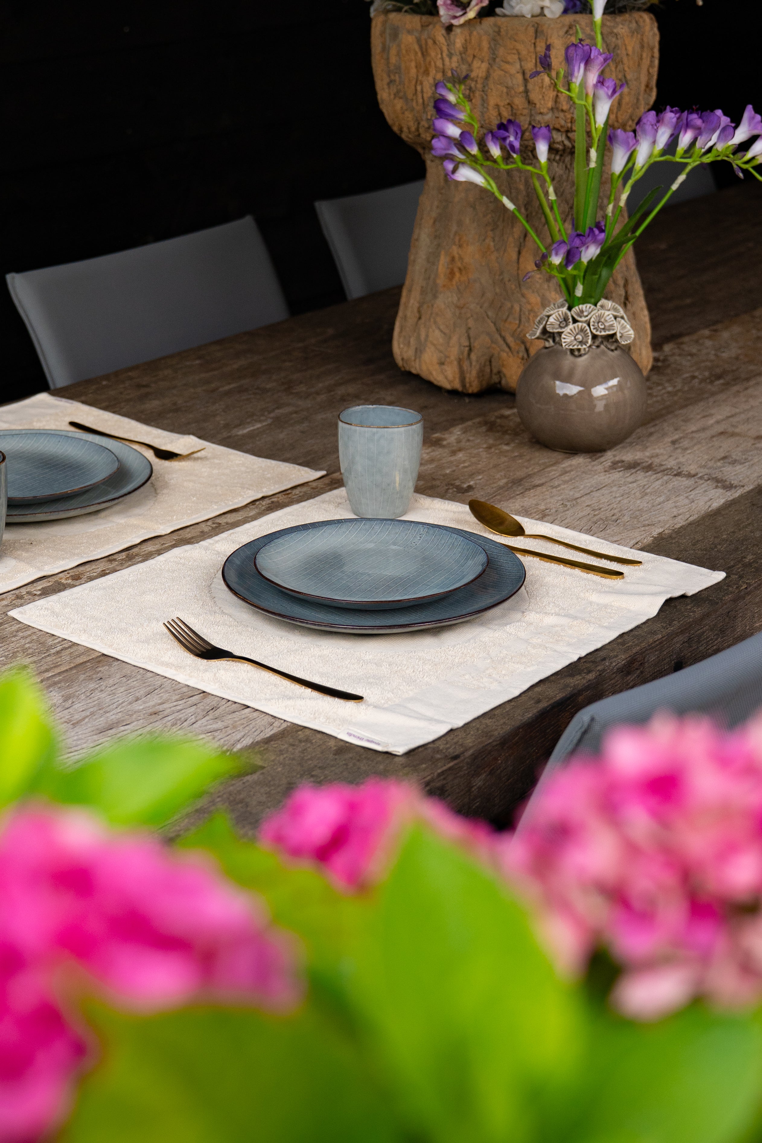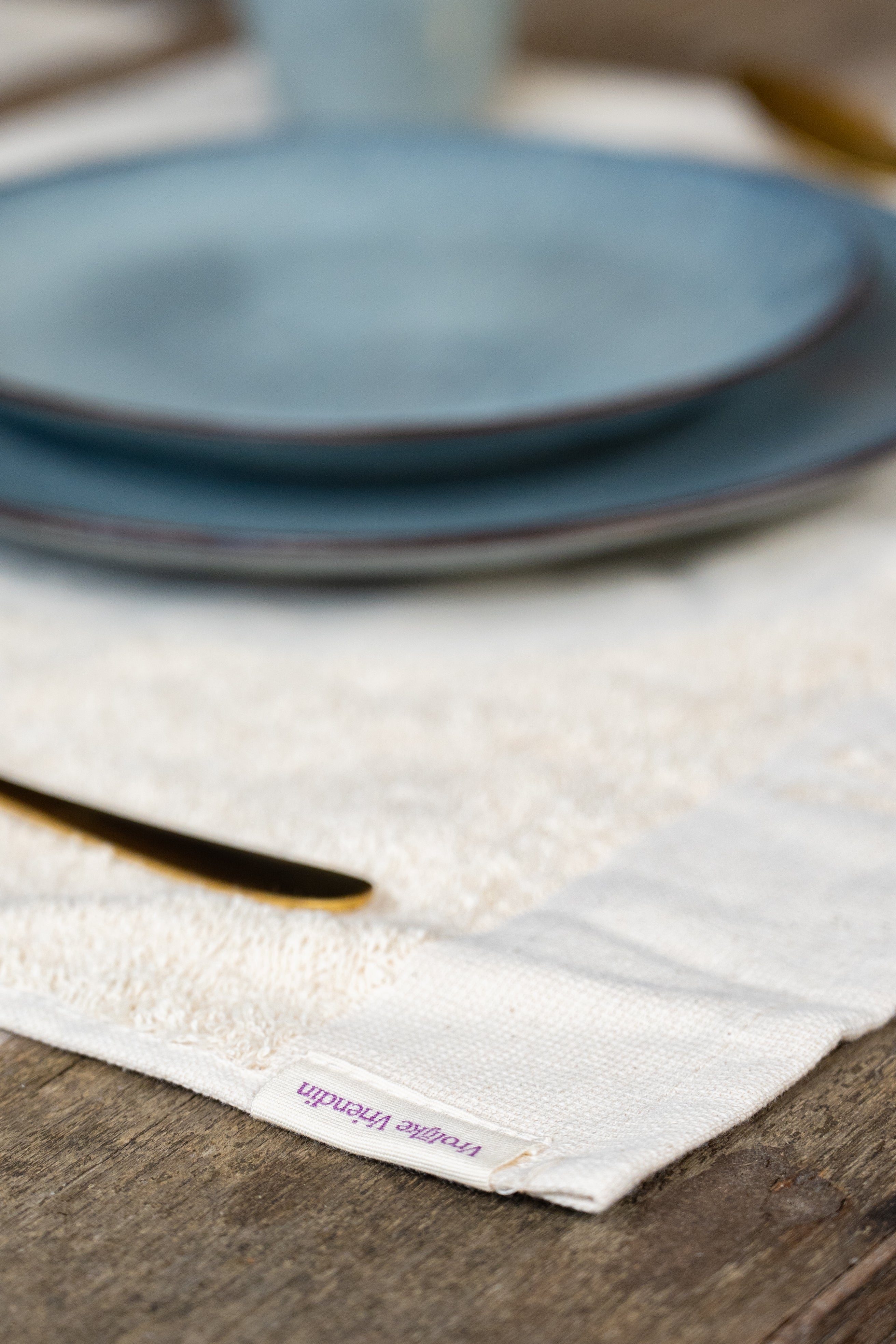 Deze placemat van ongebleekt badstof katoen is een vrolijke, stijlvolle én praktische keuze voor elke eettafel. Het ontwerp is uniek door het ingeweven bord en glas, wat zorgt voor een speels detail dat direct de aandacht trekt. Doordat de placemat eenvoudig schoon te maken is, kun je elke dag weer genieten van een frisse, schone placemat. Ideaal voor dagelijks gebruik of om je tafel een feestelijk en vrolijk accent te geven. De placemats worden geleverd in een set van 2.