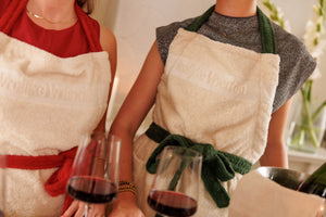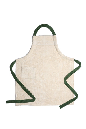 Met de prachtige donkergroene verstelbare riem zit dit beige, zacht badstof katoenen schort altijd comfortabel en past het bij iedere lichaamsvorm. Dankzij de handige zak kun je gemakkelijk je keukengerei opbergen. De donkergroene riem voegt een subtiele, elegante touch toe. Het schort biedt het gemak om snel je handen af te vegen tijdens het koken, doordat het badstof snel vocht absorbeert. Je kunt het schort gewoon uitwassen en daarom is dit item perfect voor dagelijks gebruik.