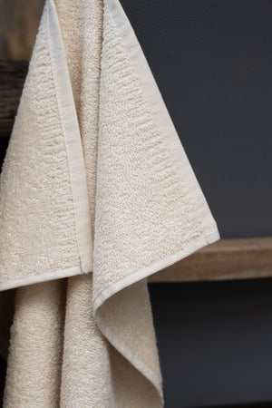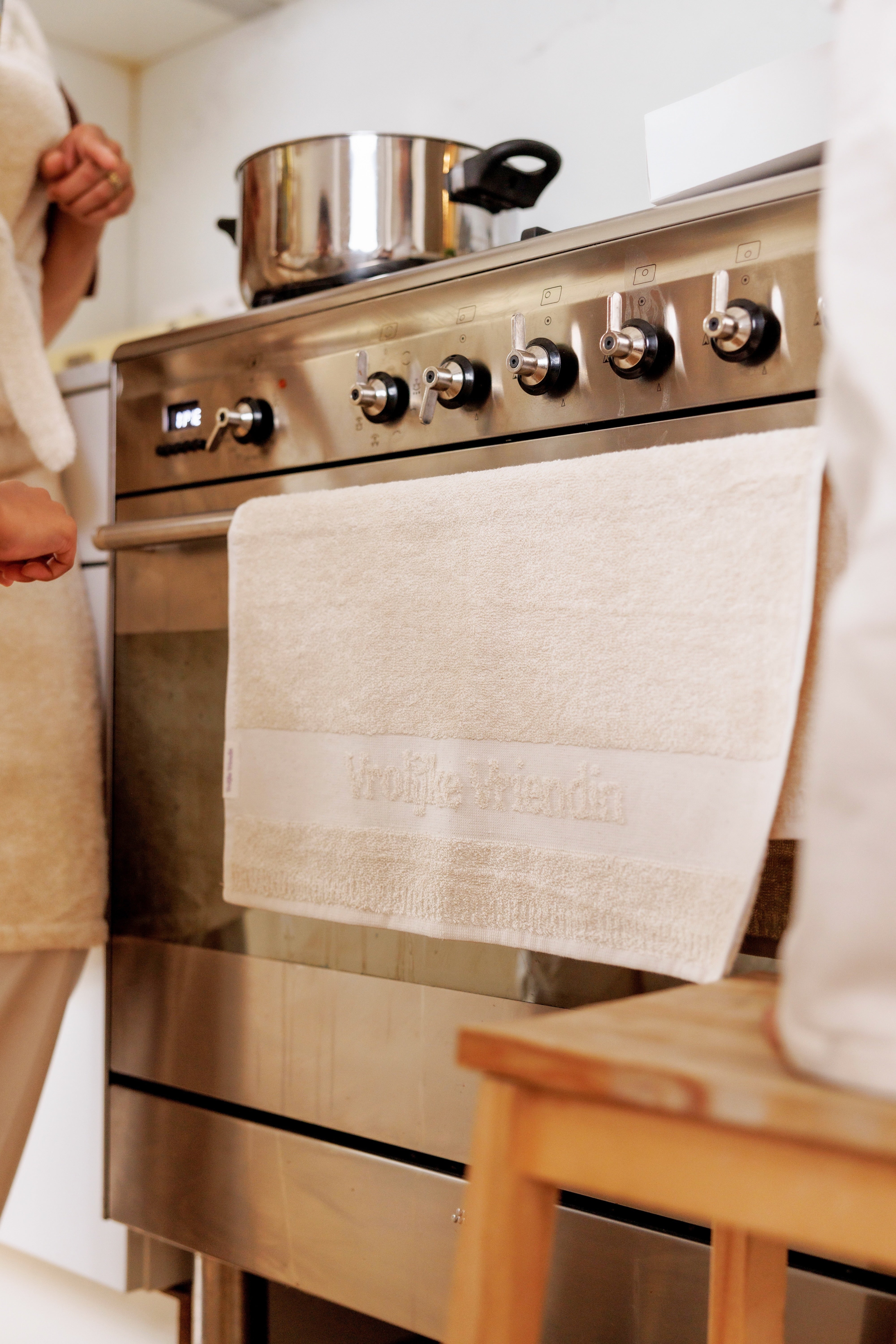 Deze set van 2 handdoeken combineert stijl, zachtheid en duurzaamheid in één vrolijk pakket. Precies wat jouw keuken verdient. Onze handdoeken zijn gemaakt van 100% ongebleekt terry katoen. Dat is katoen in z’n puurste vorm: niet gebleekt en niet behandeld met agressieve chemicaliën, woordoor de stof gewoon natuurlijk mooi is en heerlijk zacht aanvoelt. Goed voor je huid én vriendelijk voor het milieu. Daar worden wij weer vrolijk van! De warme, lichtbeige tint en speelse details geven je keuken meteen een frisse, gezellige uitstraling. En superpraktisch: het ophanglusje zit precies in het midden, zodat de handdoek mooi hangt en niet over de grond sleept.