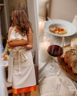 Het zachte, ongebleekte katoenen schort heeft en verstelbare nek- en tailleband, waardoor het schort altijd bij iedereen past. Daarnaast heeft het schort een handige badstof zak aan de voorkant om al je spullen in op te bergen, of om te gebruiken als handdoekje om je handen aan af te vegen.
