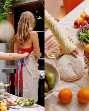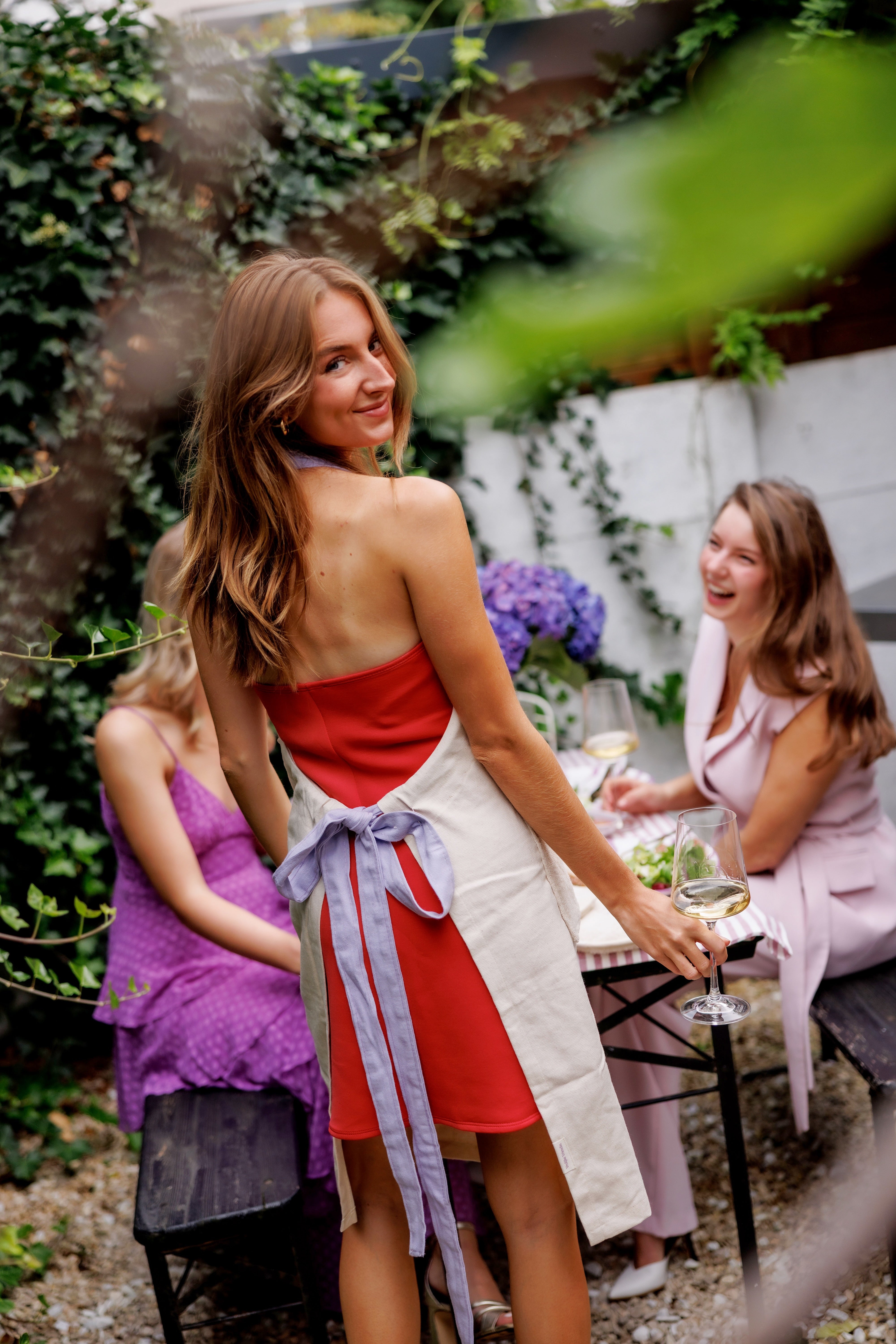 Breng een vleugje vrolijke charme in je keuken met dit praktische, stijlvolle schort van ongebleekt katoen. Het zachte, natuurlijke materiaal voelt heerlijk aan, is vrij van agressieve chemicaliën en dus perfect voor wie kiest voor puur comfort, ook bij een gevoelige huid.